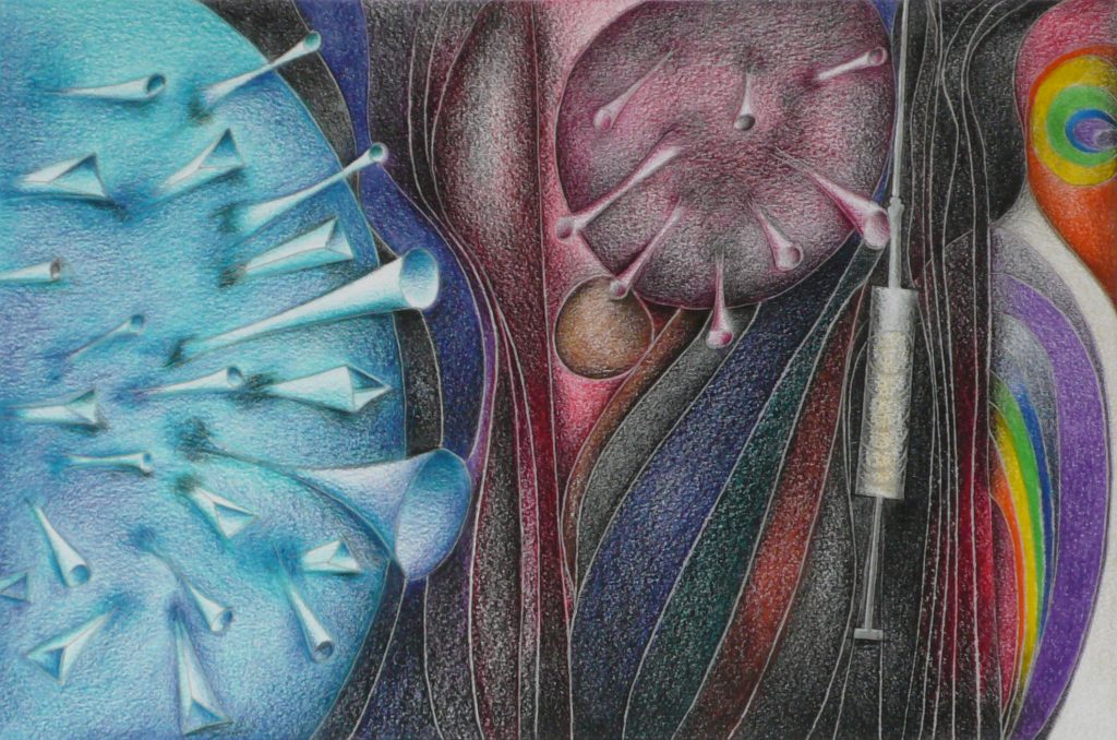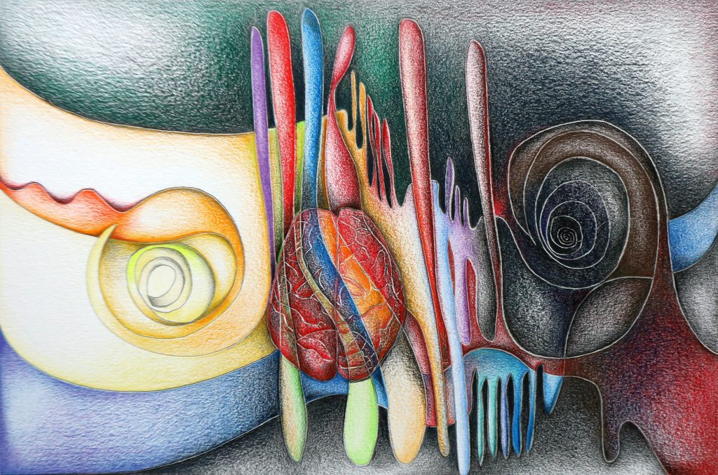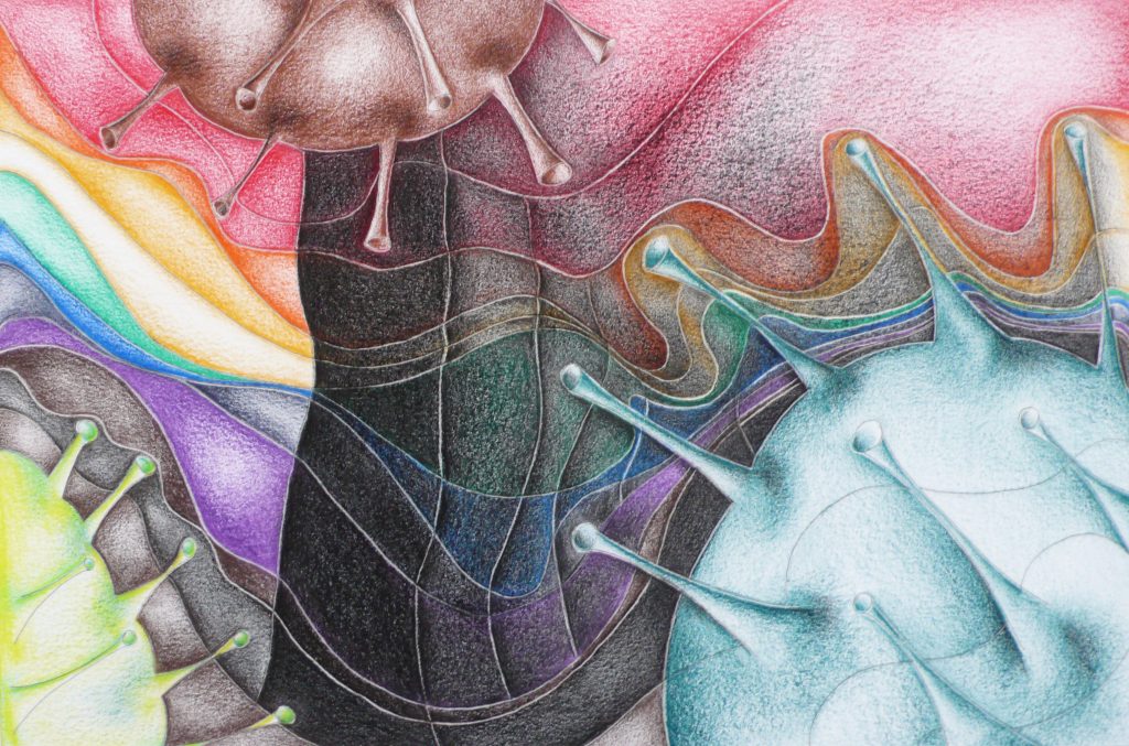 De thema’s in mijn werk zijn een reflectie van concrete gedachten en emoties uit het dagelijks leven. Mijn fascinatie voor het heelal, natuur en de schaduwzijden van het menselijk bestaan vinden hun weerslag op het papier. Alle tekeningen zijn unica’s.